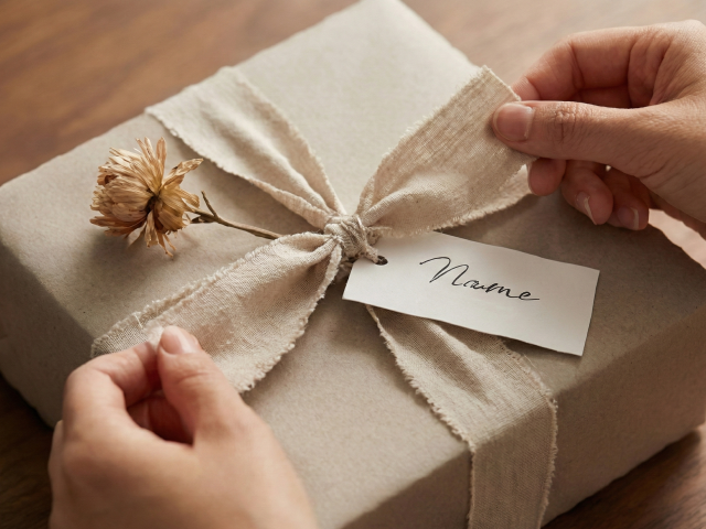 ギフト包装、手書きメッセージ、名入りタグなど、